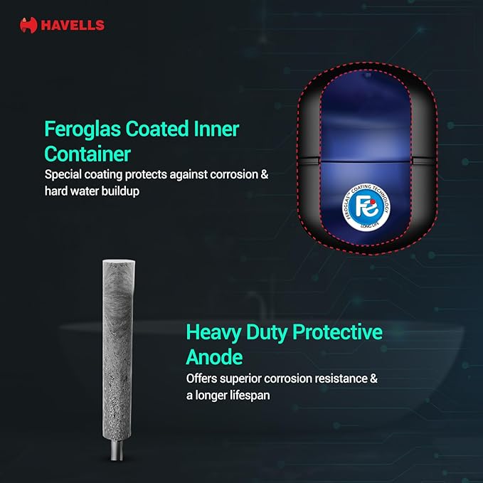 • Feroglas Coated Inner Container- Protection against Corrosion & Hard Water Buildup