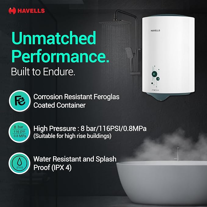 Be the first to review “Havells Monza 25 Litre Storage Water Heater (Geyser) | Faster heating | Glass Coated Anti Rust Tank & Heavy Duty Heating Element | Warranty: 5 Year on Tank | High Rise Compatible”