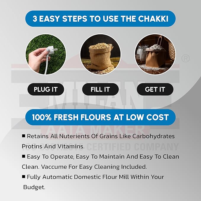 sahajsales.com Milan Fully Automatic Domestic Flour Mill Machine – Atta Chakki, Aata Maker, Ghar Ghanti | 8-10 Kg/Hr Grinding Capacity, 4.5 Kg Hopper | 2880 RPM Motor | Low Voltage Operation (175V)(Small Pot) https://sahajsales.com https://sahajsales.com/product/milan-fully-automatic-domestic-flour-mill-machine-atta-chakki-aata-maker-ghar-ghanti-8-10-kg-hr-grinding-capacity-4-5-kg-hopper-2880-rpm-motor-low-voltage-operation-175vsmall-pot/ https://sahajsales.com/product/milan-fully-automatic-domestic-flour-mill-machine-atta-chakki-aata-maker-ghar-ghanti-8-10-kg-hr-grinding-capacity-4-5-kg-hopper-2880-rpm-motor-low-voltage-operation-175vsmall-pot/ Milan Fully Automatic Domestic Flour Mill Machine - Atta Chakki, Aata Maker, Ghar Ghanti | 8-10 Kg/Hr Grinding Capacity, 4.5 Kg Hopper | 2880 RPM Motor | Low Voltage Operation (175V)(Small Pot) ₹26,999.00 ₹16,399.00 -39%