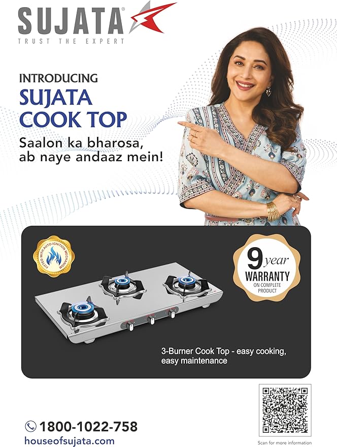 Be the first to review “Sujata Gas Stove | 9 Years Warranty | Auto Ignition Gas Stove 3 Burner, Steel Body, SABAF, ISI Certified, LPG & PNG Compatible, Jumbo Pack with Brass Burner (Sterno, Stainless Steel)”